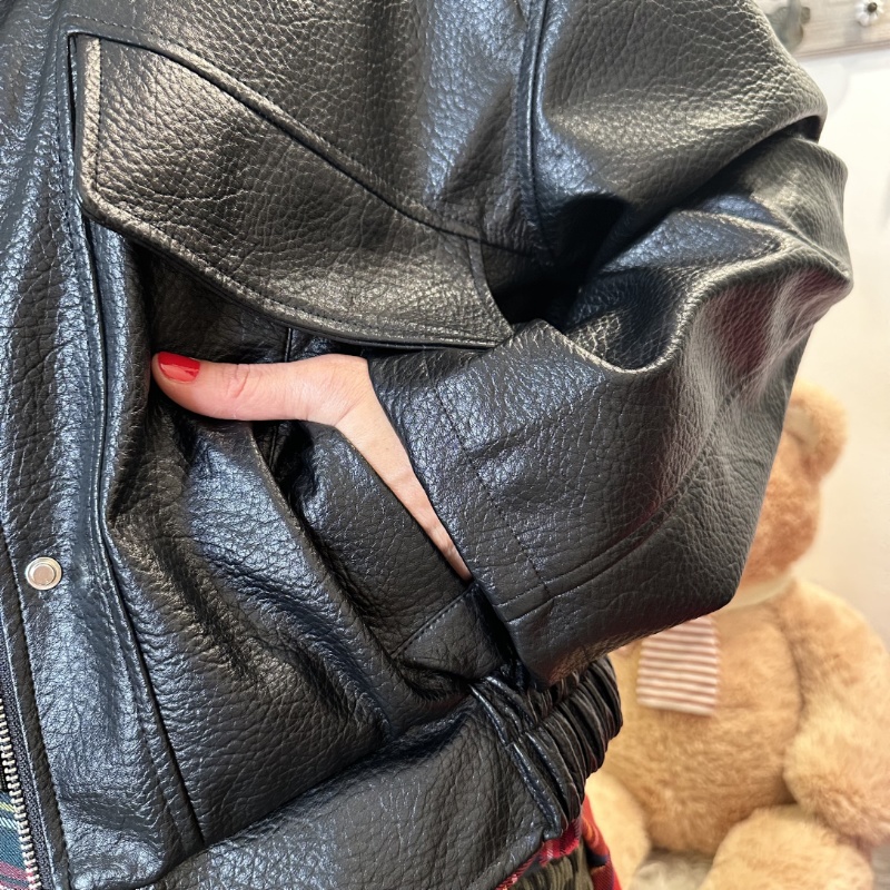 Giubbino over in morbidissima simil pelle stampata , modello over con spalla scesa , zip centrale , tasche laterali, fodera interna elastico con cintura sul fondo