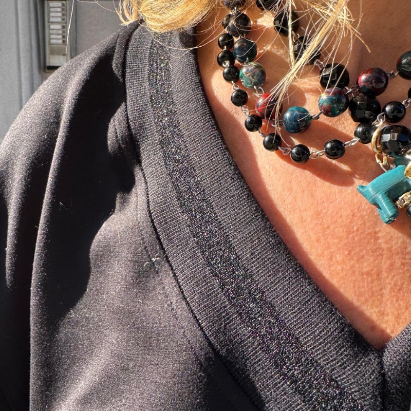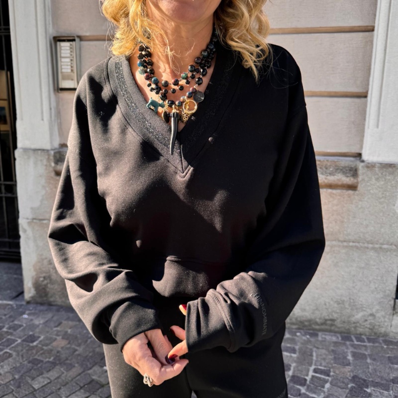 Felpa in viscosa con scollo a V ed inserto in lurex