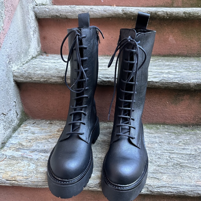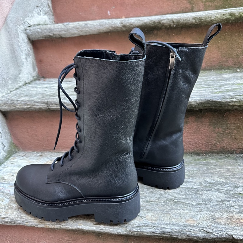 Anfibio in vera pelle con carrarmato in gomma , 11 fori zip interna