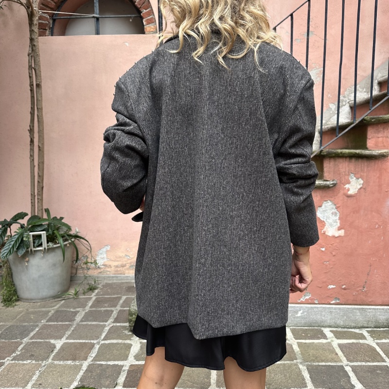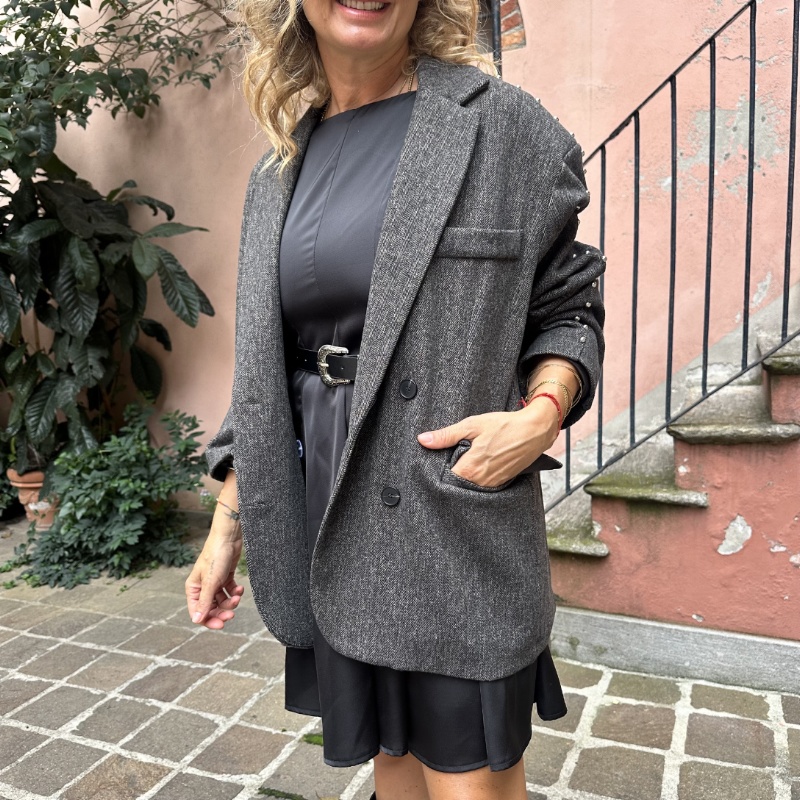 Blazer over, modello con taglio uomo, fodera interna, spallotte imbottite borchie applicate
