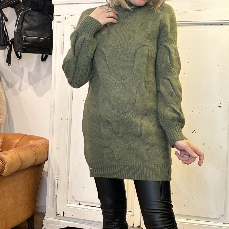 Dress in maglia elasticizzata, modello a lupetto con motivi intrecciati