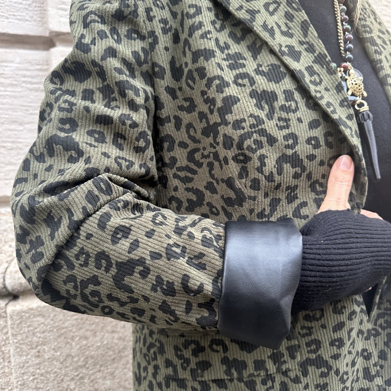Giacca in velluto con stampa animaler, inserto in ecopelle sul coletto