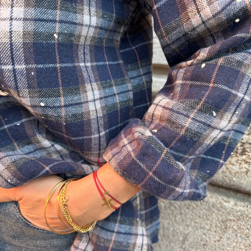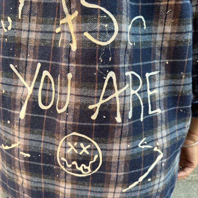 Camicia fantasia con stampa sul retro e spruzzi realizzati a mano