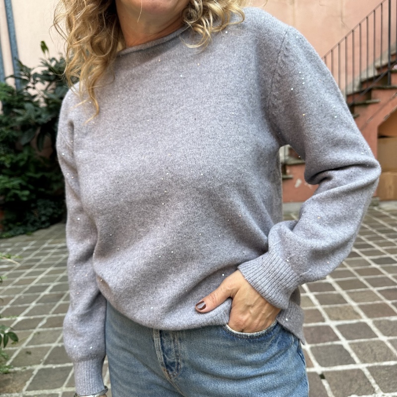 Pull modello over con spacchetti laterali con micropailettes applicate