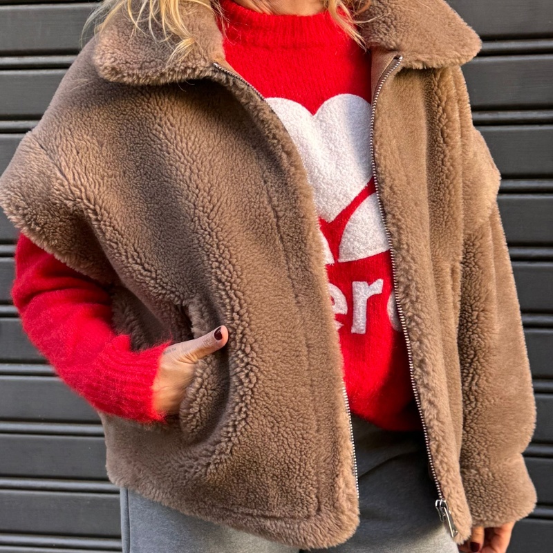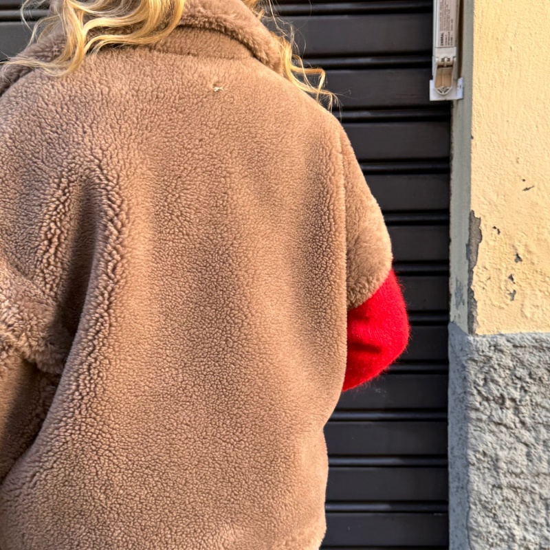 teddy con spalla scesa e manica staccabile, tasche laterali