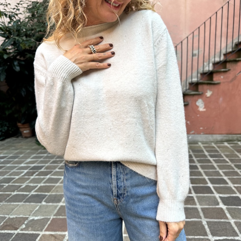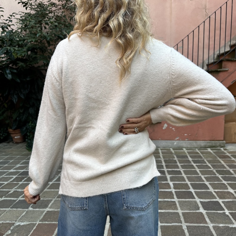 Pull modello over con spacchetti laterali con micropailettes applicate