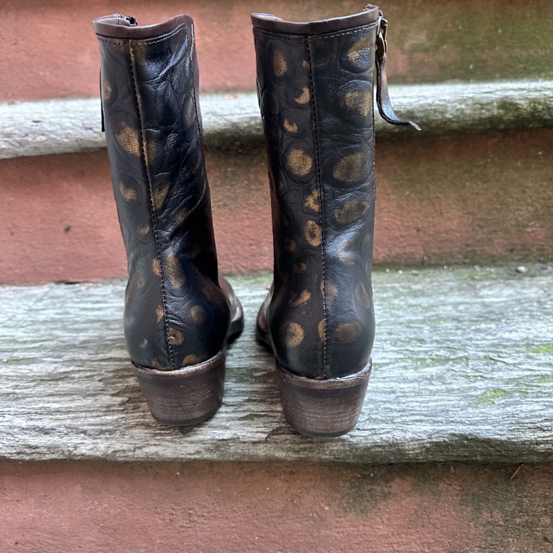 Tronchetto in vera pelle, modello artigianale con zip interna , punta stondata parte posteriore stampa cocco laminata, fondo in cuoio