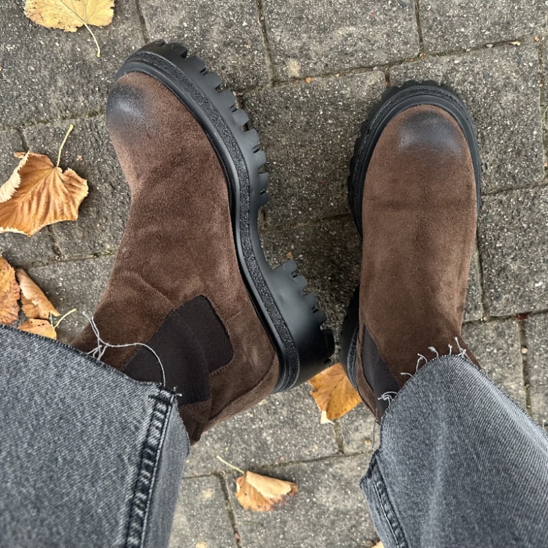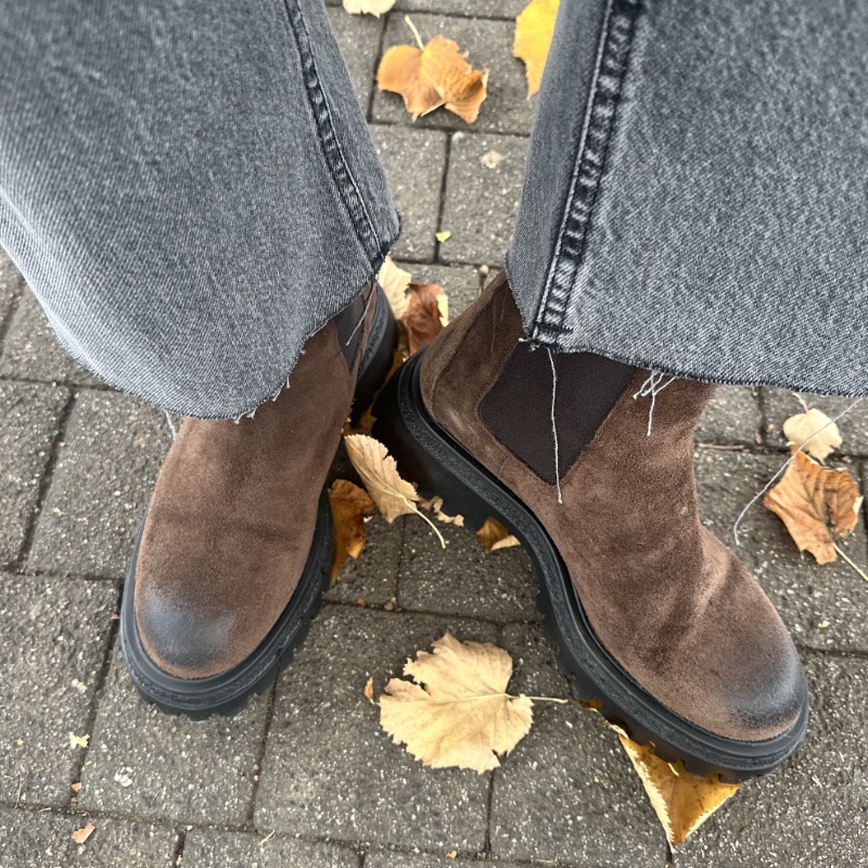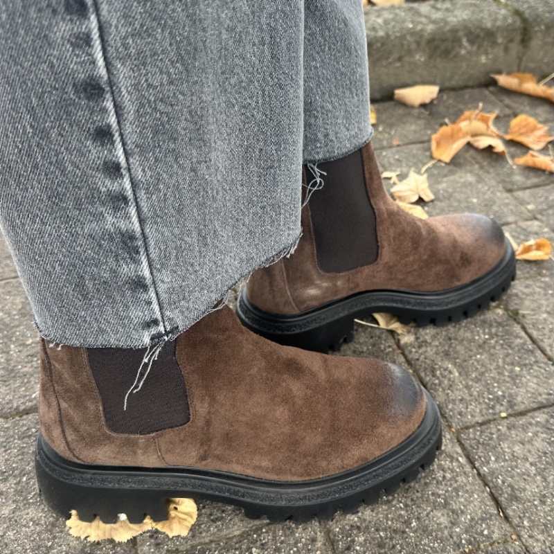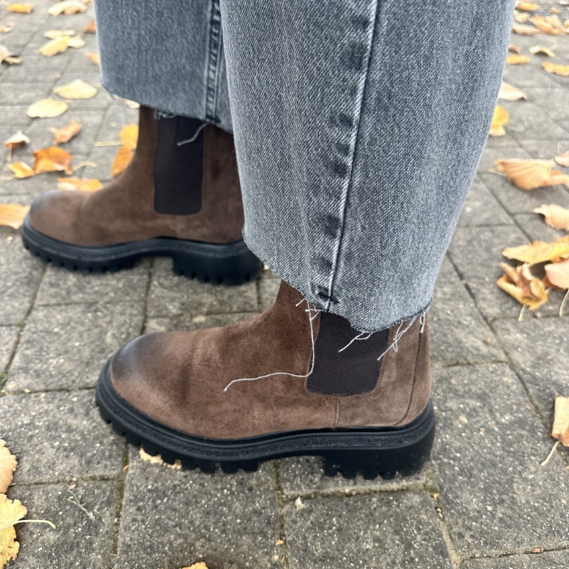 Boots in camoscio, modello con elastici laterali e carrarmato in gomma