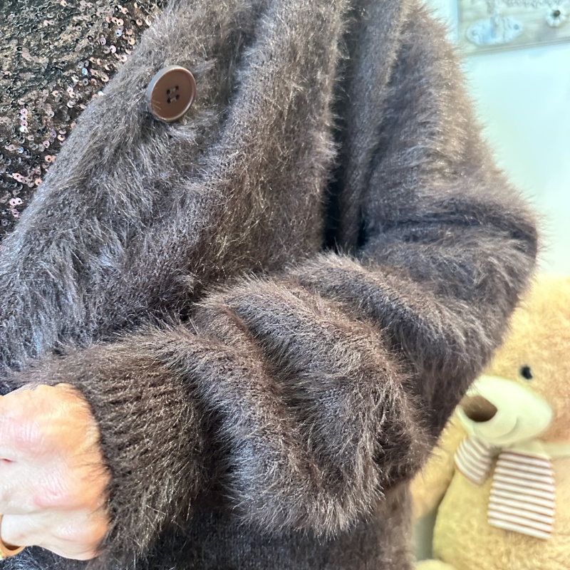 Cardigan effetto visone con allacciatura centrale