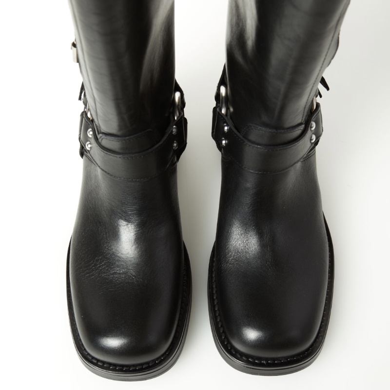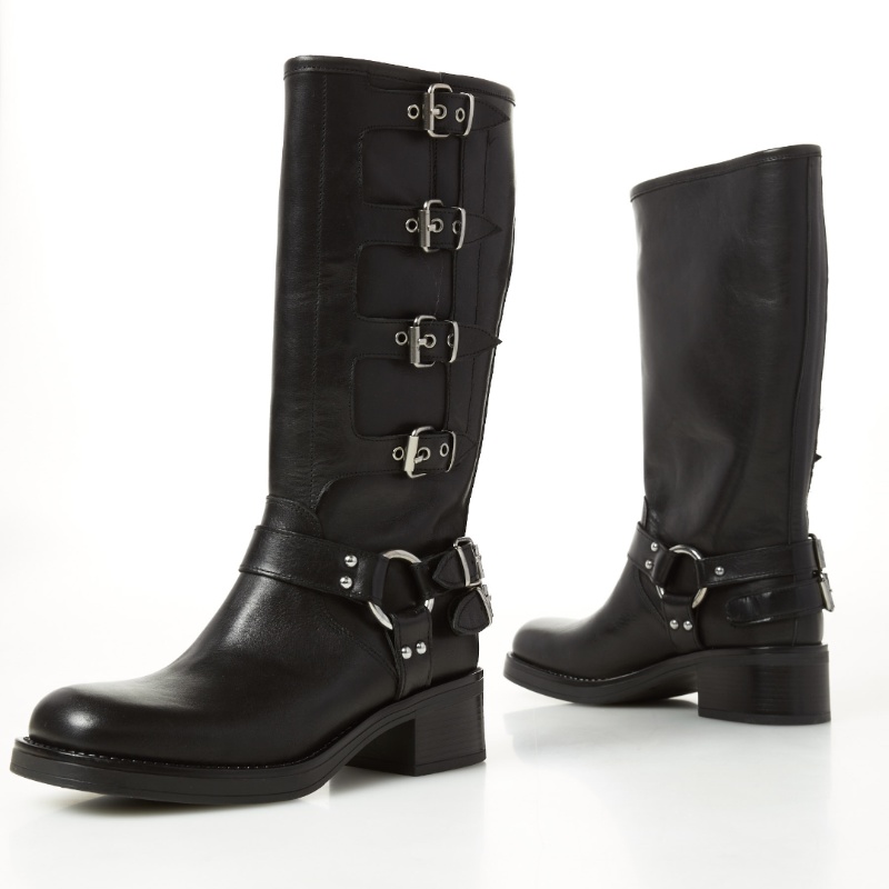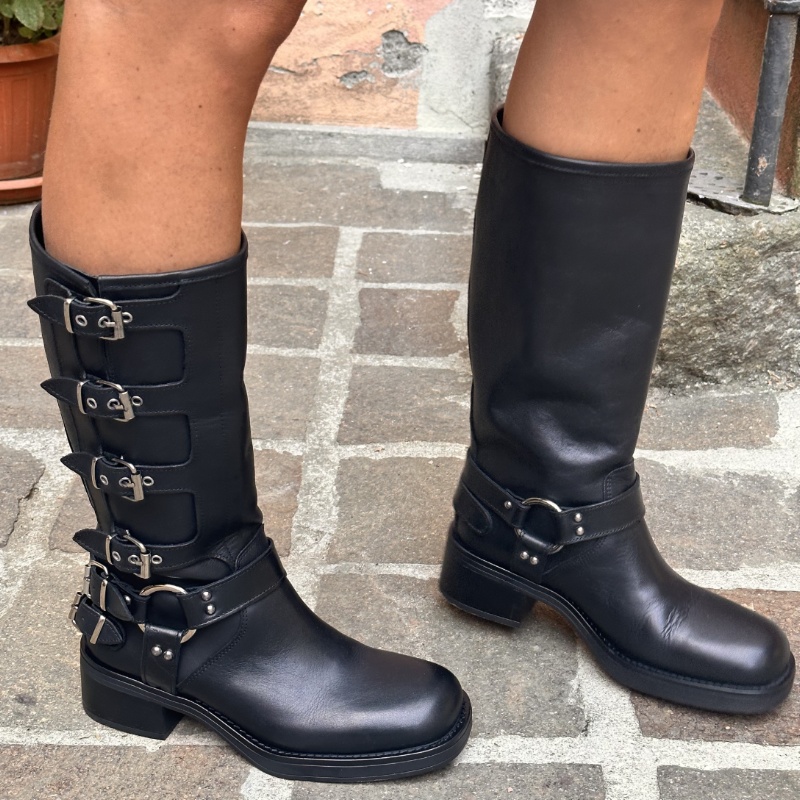 Biker in vera pelle con fibbie altezza tacco 4 cm