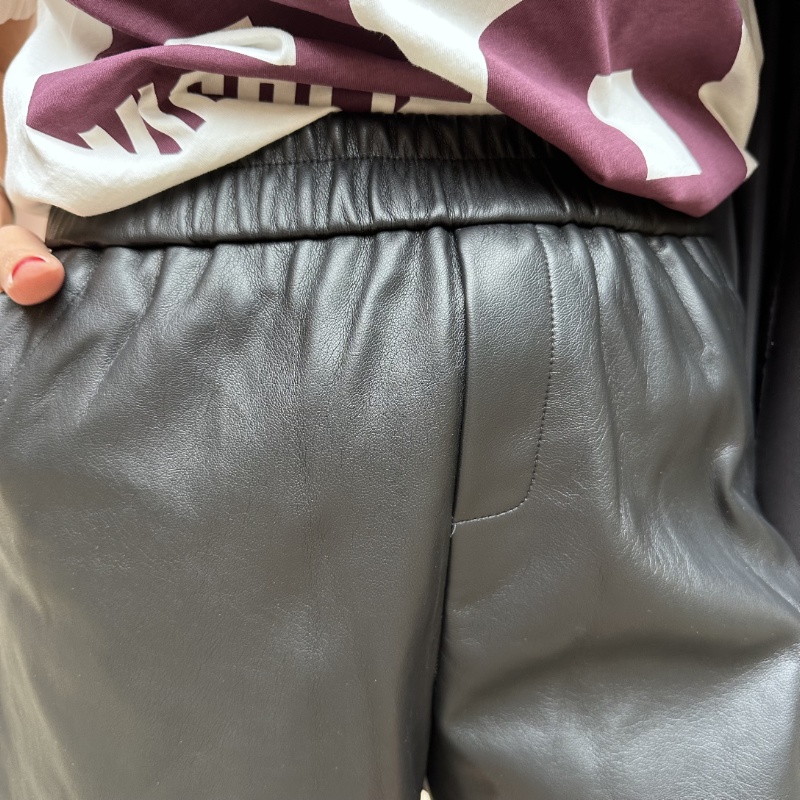Short in ecopelle morbidissima, modello con elastico in vita, tasche laterali e tasca lunga che fuori esce dalla gamba