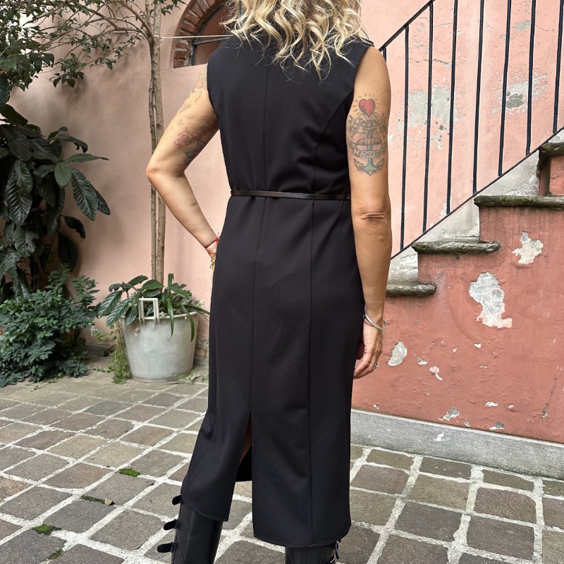 abito midi, modello a tubino elasticizzato in punto milano, zip sul retro , cinturina inclusa
