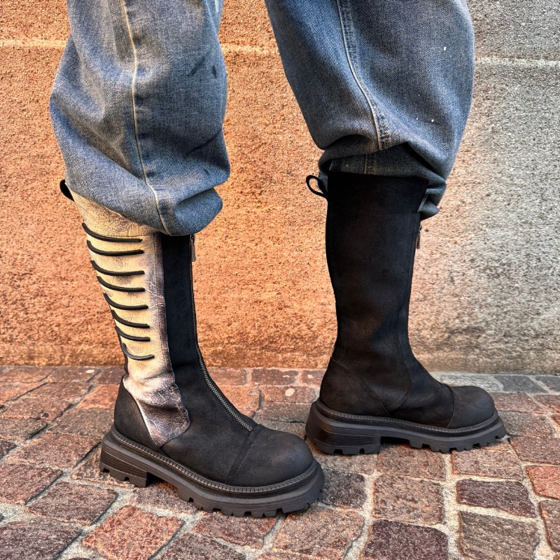 Stivale in vera pelle con carrarmato in gomma, , zip centrale , asimmetrico