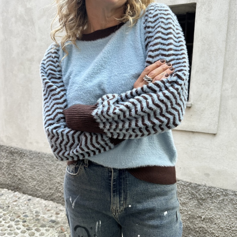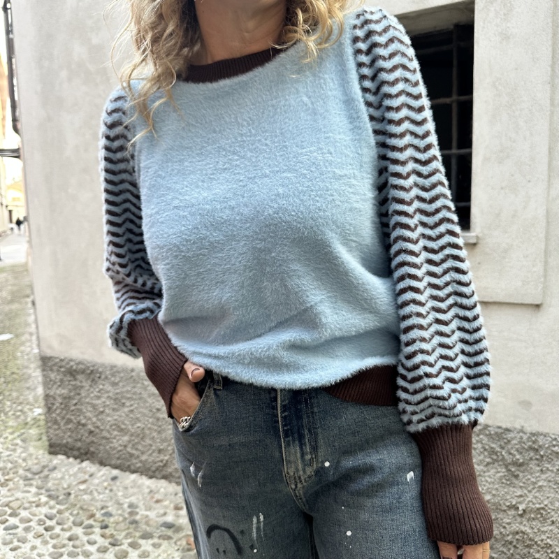 Maglioncino in calda viscosa effetto orsetto, super confortevole, maniche rigate e spalla leggermente a sbuffo