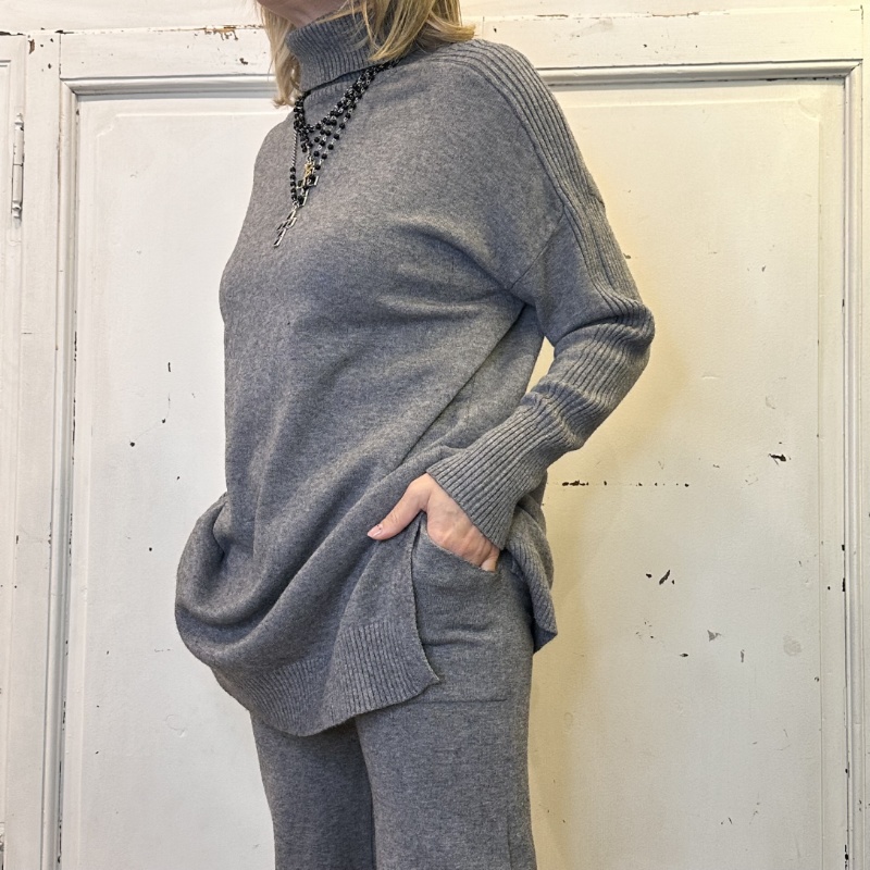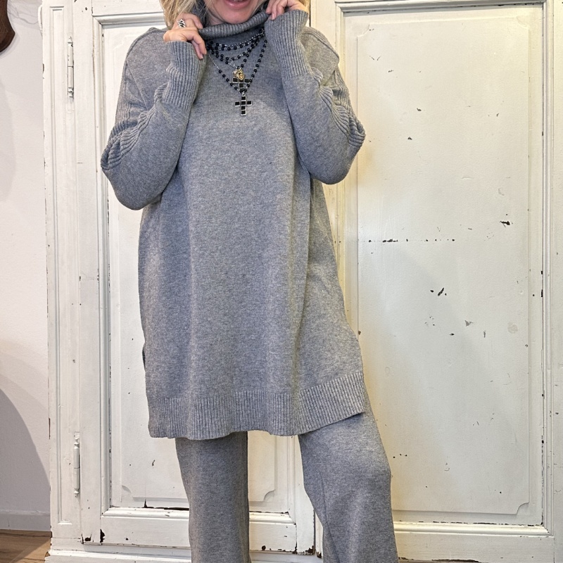 Maxi maglia in calda viscosa , modello a dolcevita con spacchi laterali