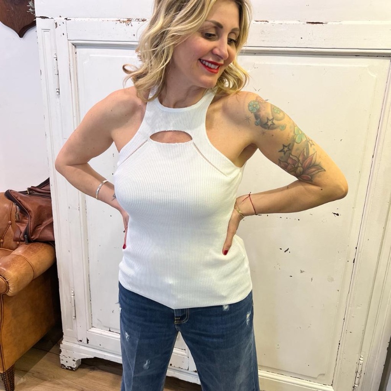 Top in viscosa, modello a vogatore con piccol apertura sul davanti