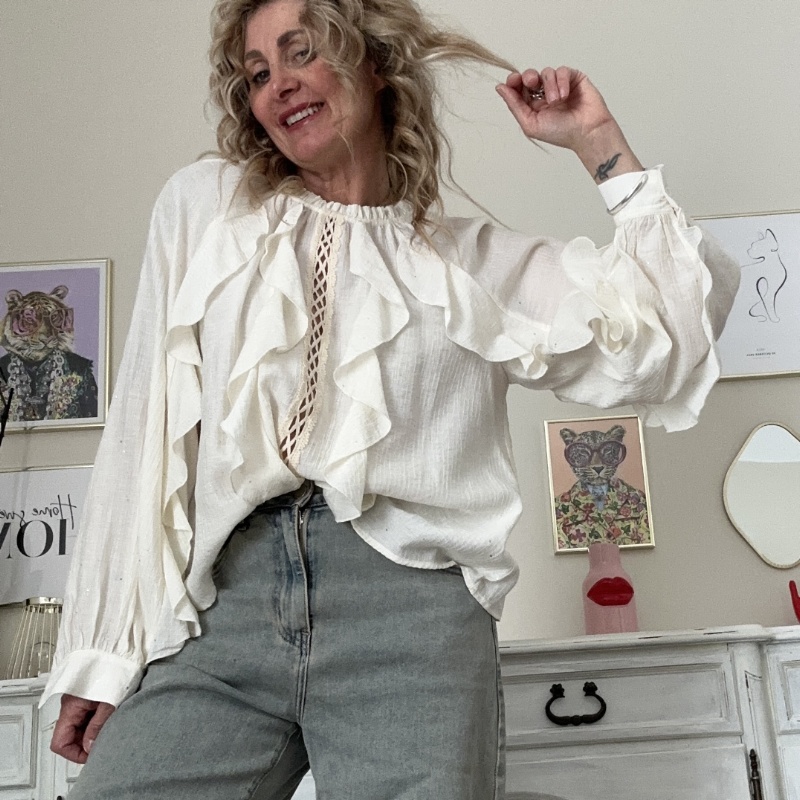 Camicia in viscosa, modello vrestibilit comoda con rouge e microstrass