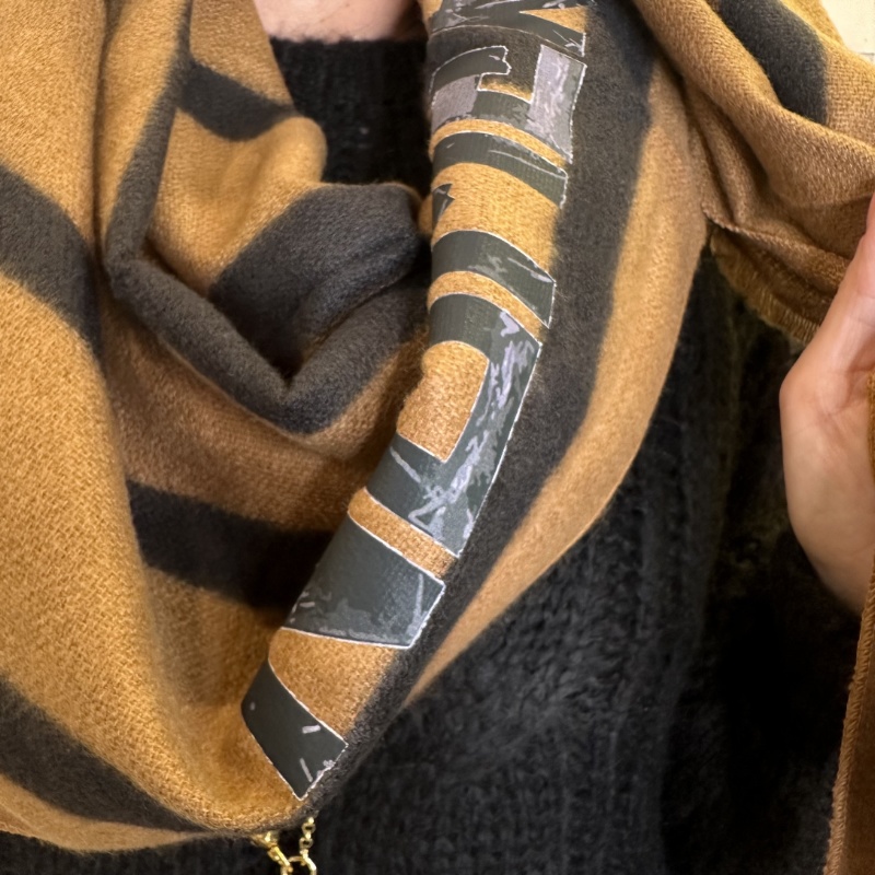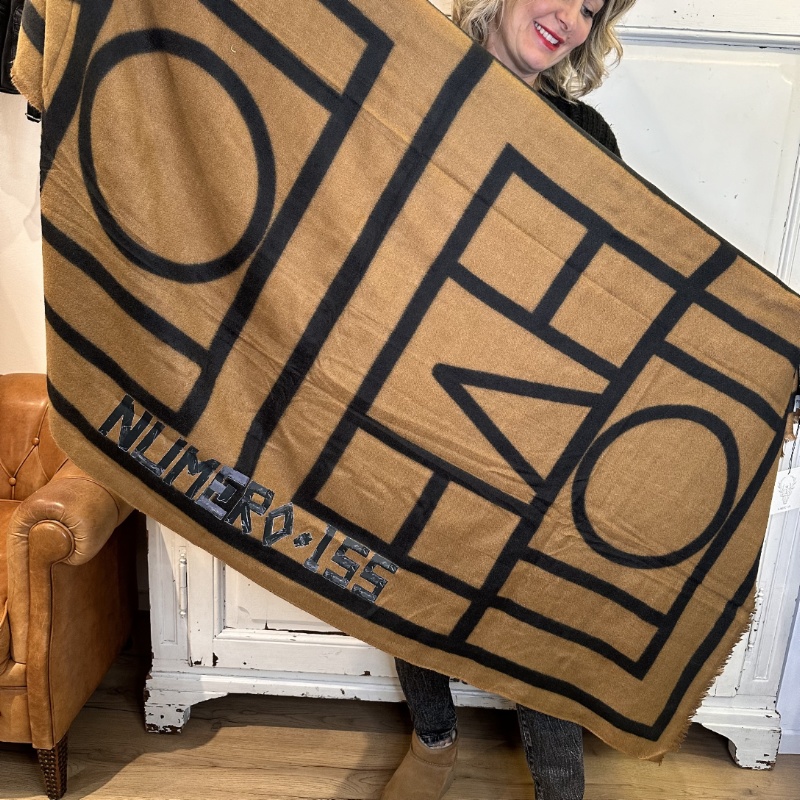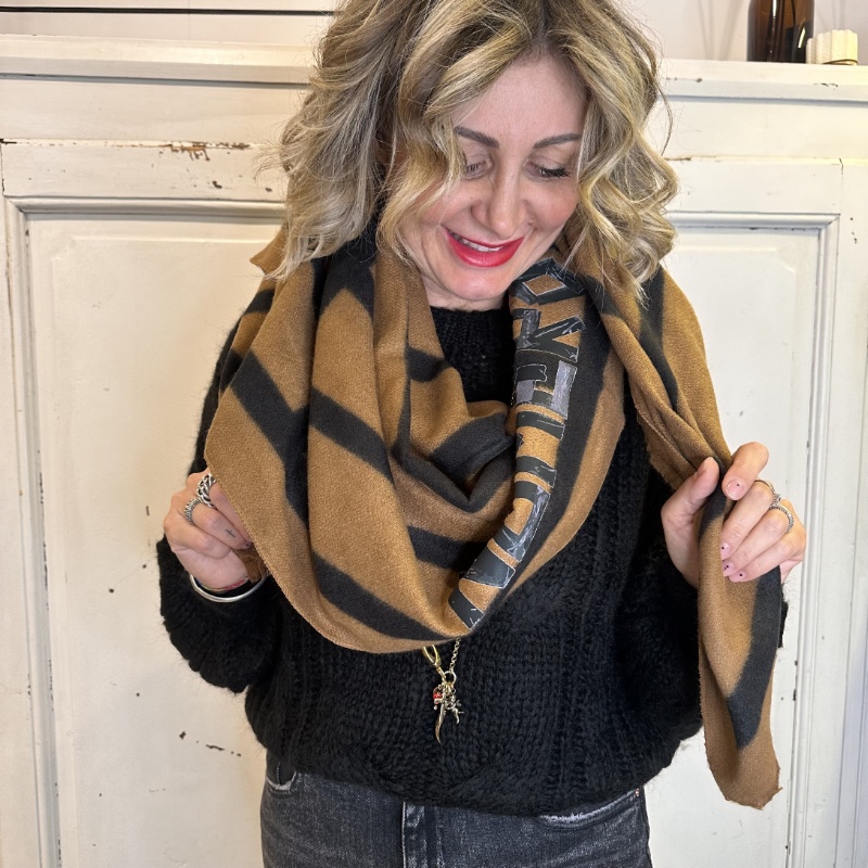 Ampia stola in calda viscosa con stampa geometrica e logo
