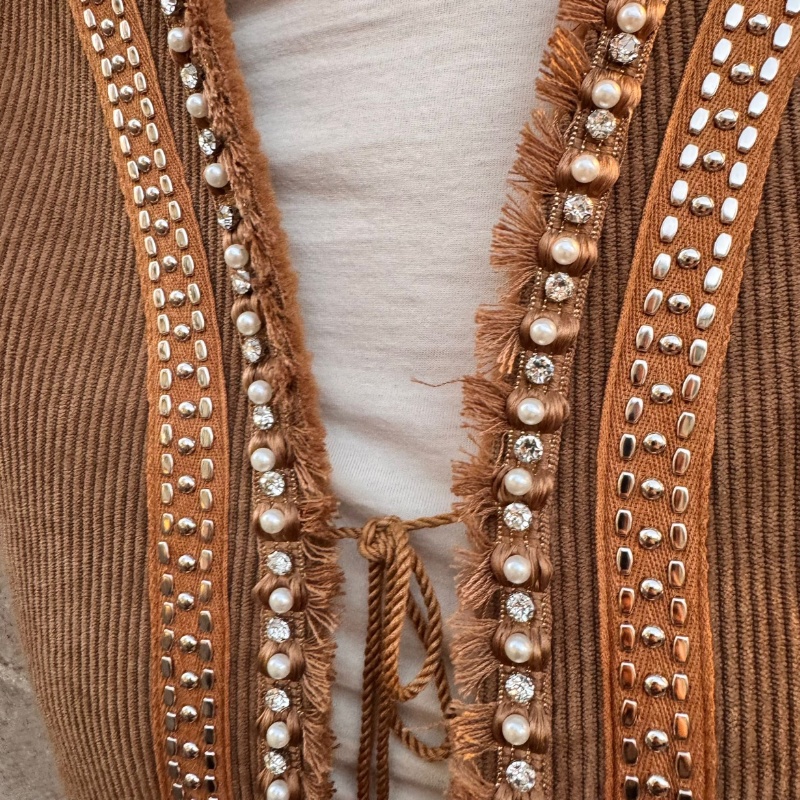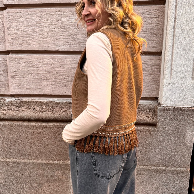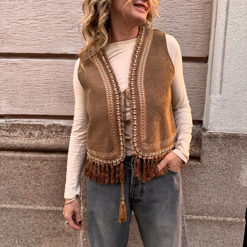 Gilet in velluto, modello con pelo interno ed applicazioni