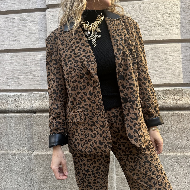 Giacca in velluto con stampa animaler, inserto in ecopelle sul coletto