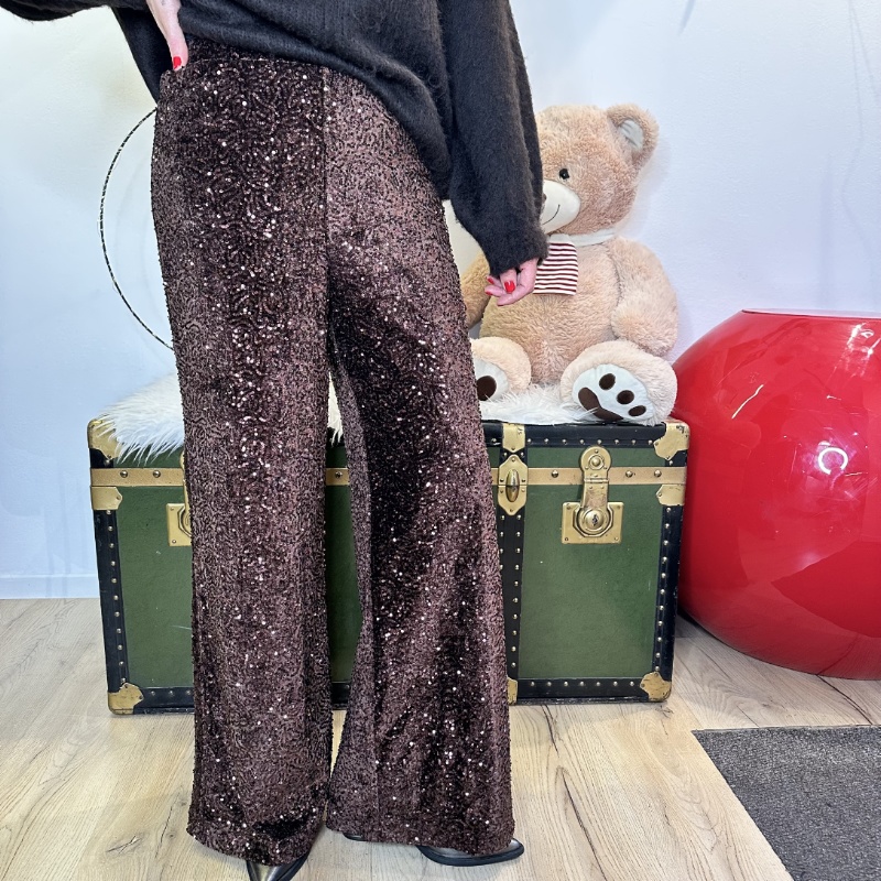 Pantalone a palazzo con paillettes base in velluto foderato, elastico in vita