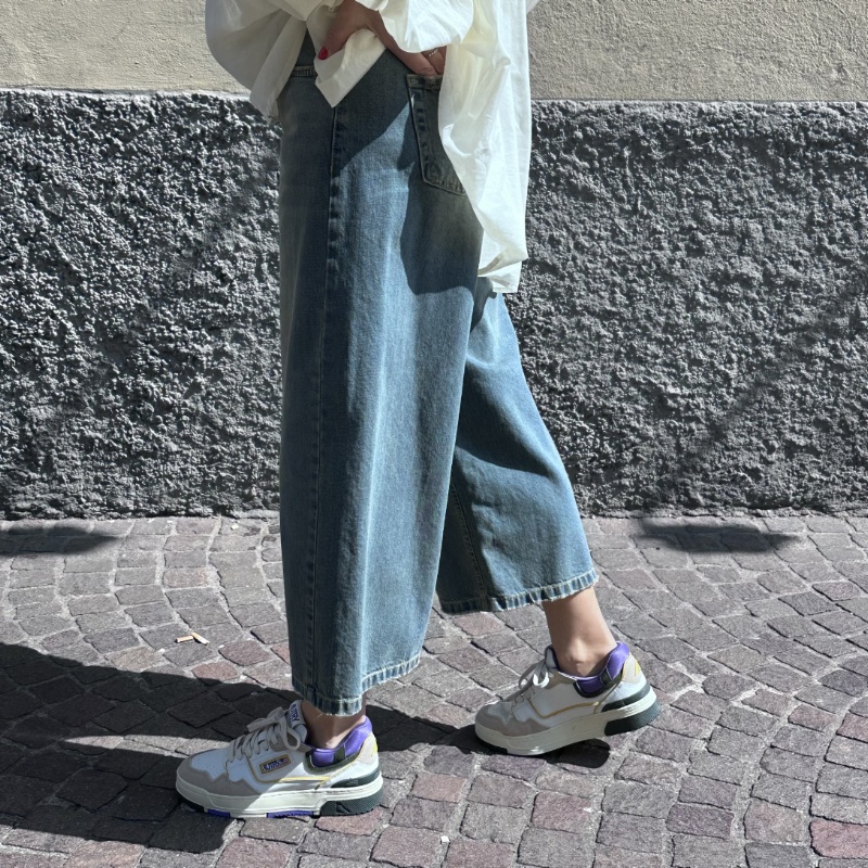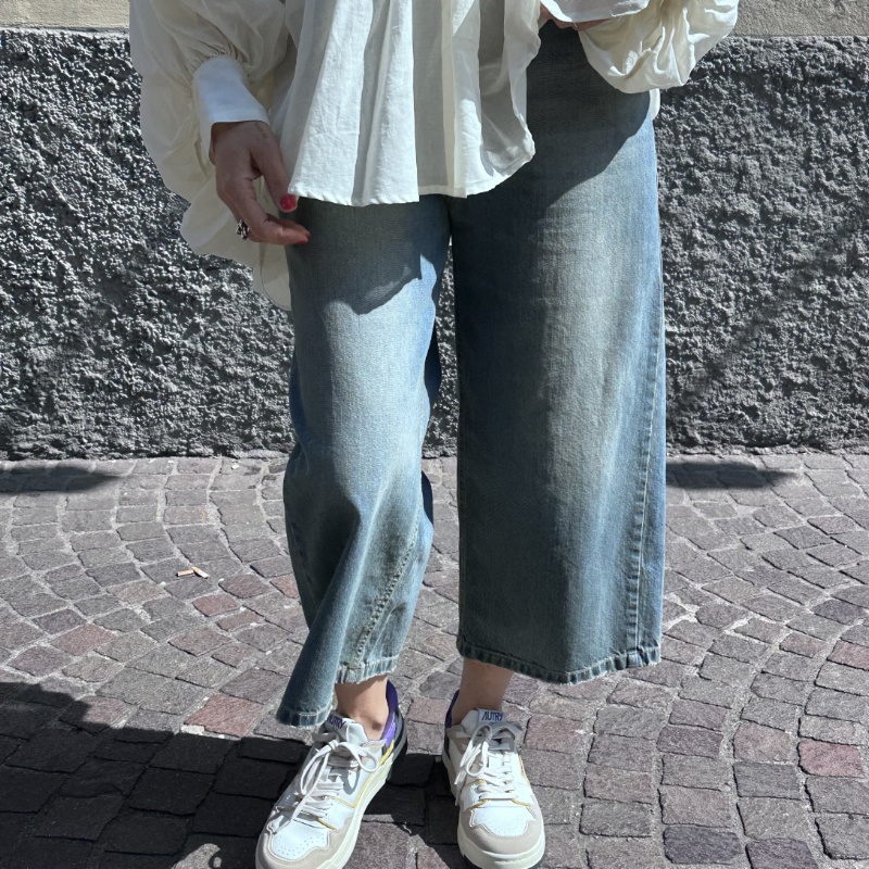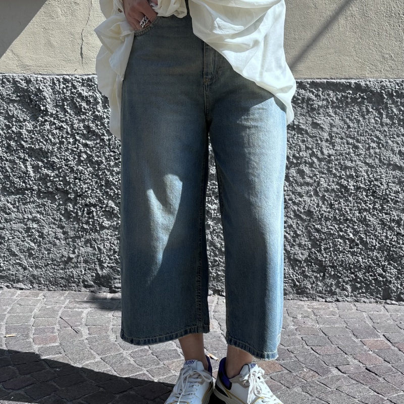 jeans a vita media, modello con cavallo leggermente sceso dal taglio corto