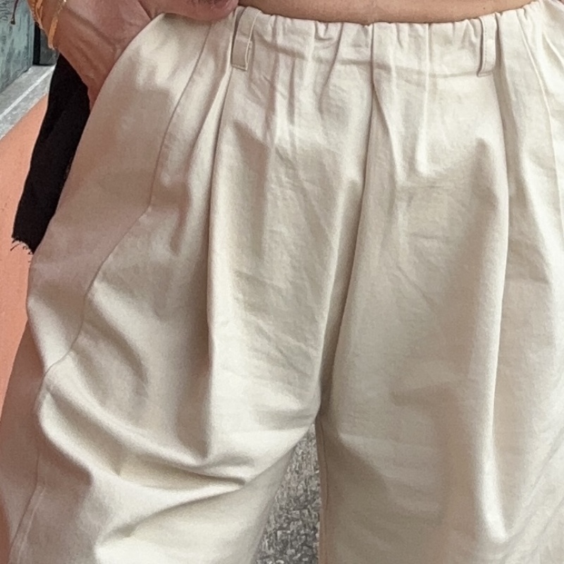 Pantalone in cotone , modello con elastico in vita, tasche laterali , choisura con zip sul fianco